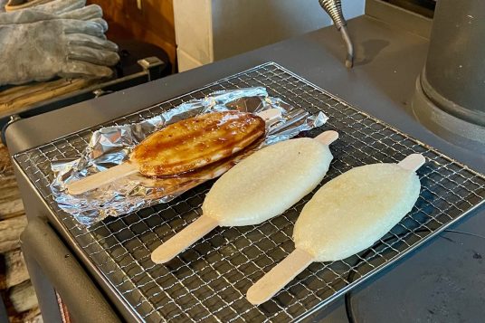薪ストーブの上で、五平餅を焼いてみませんか?